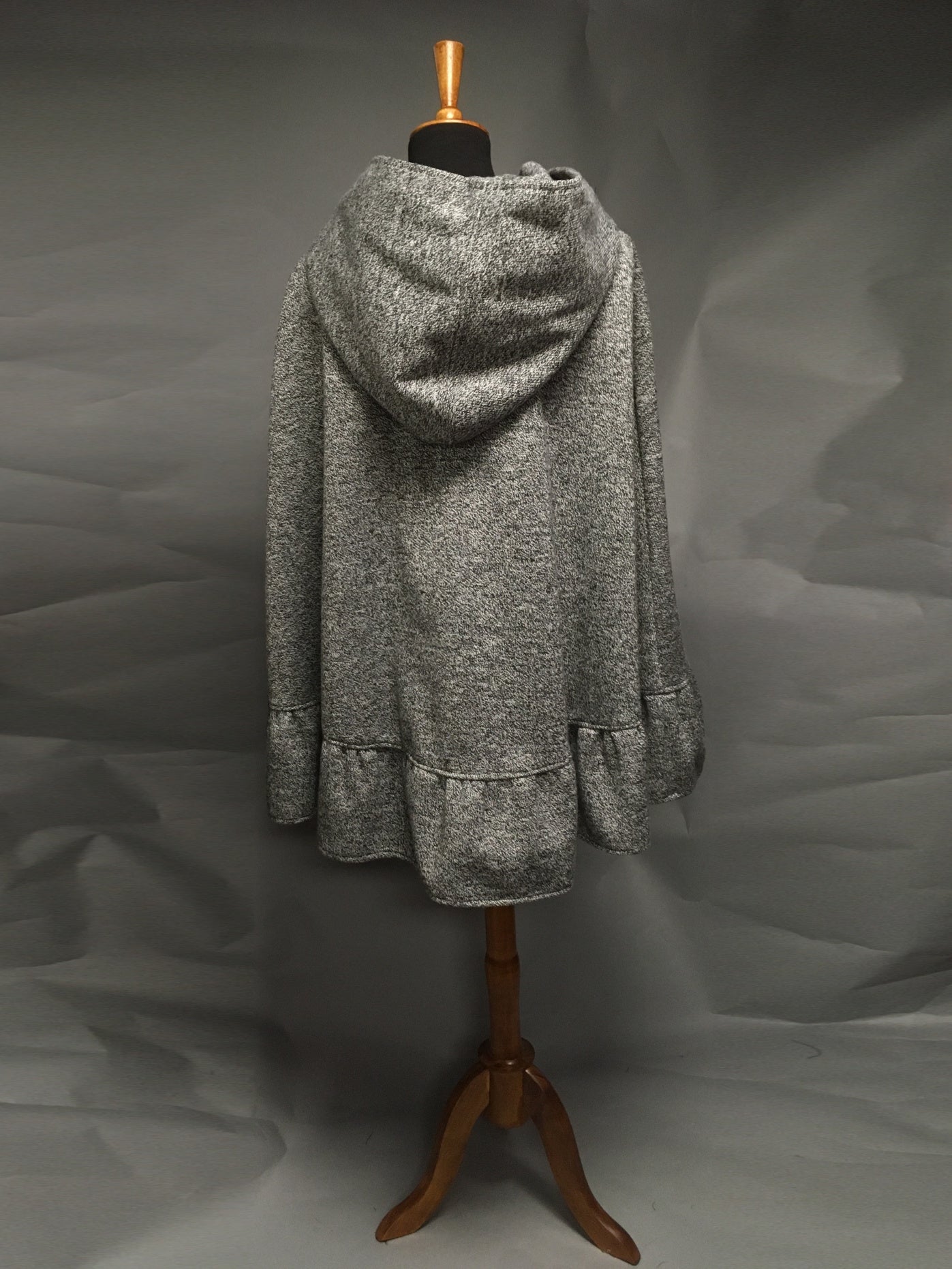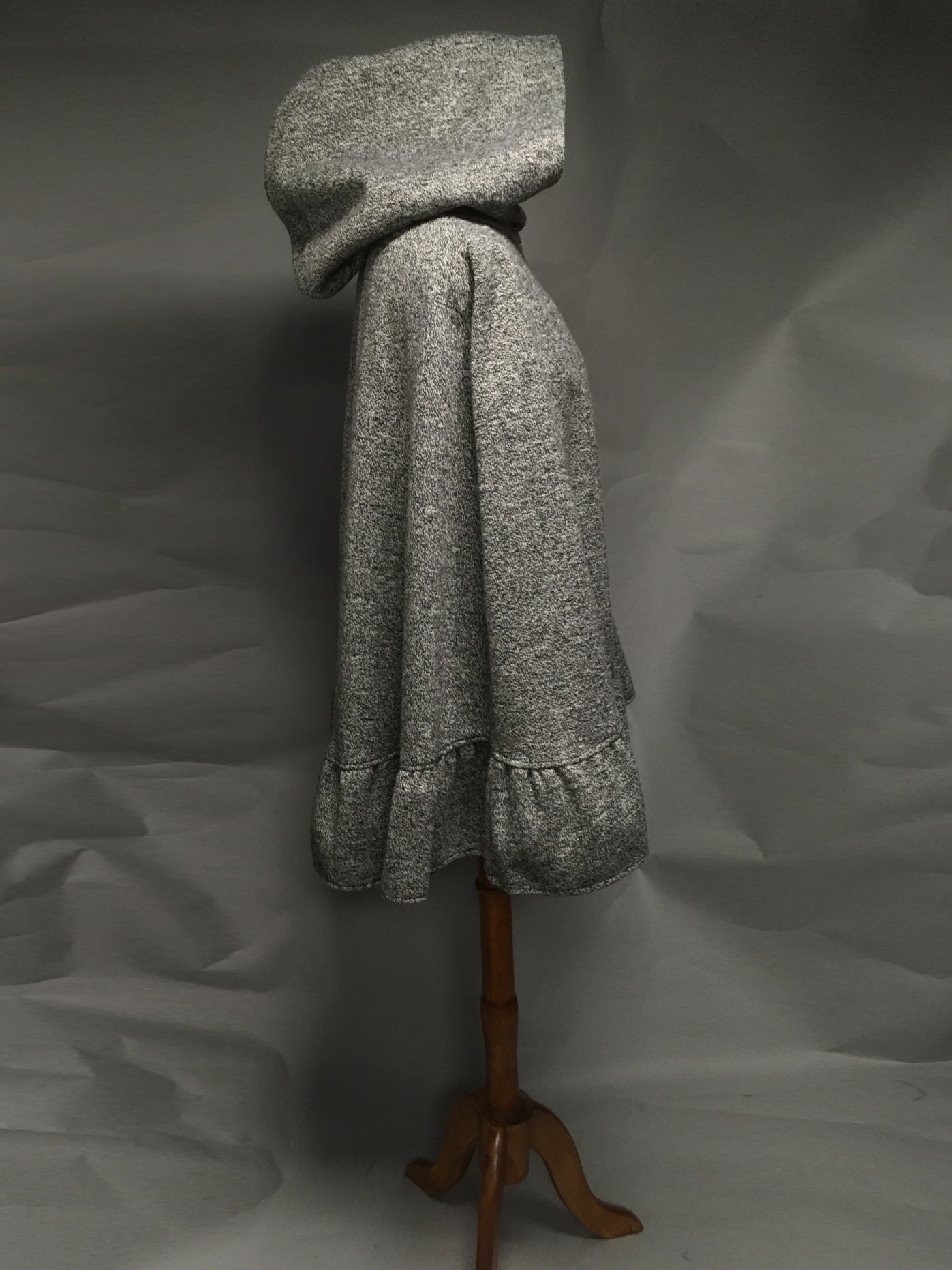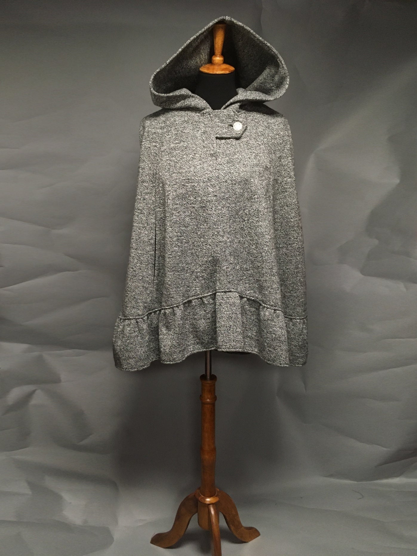 The cape is one size fits all and available in two colorways - choose either dark charcoal or a light grey mix, referred to as salt & pepper. Both fabrics feature a wool blend face, the Dintex® inner waterproof film and a black fleece back for ultimate comfort and wearability.