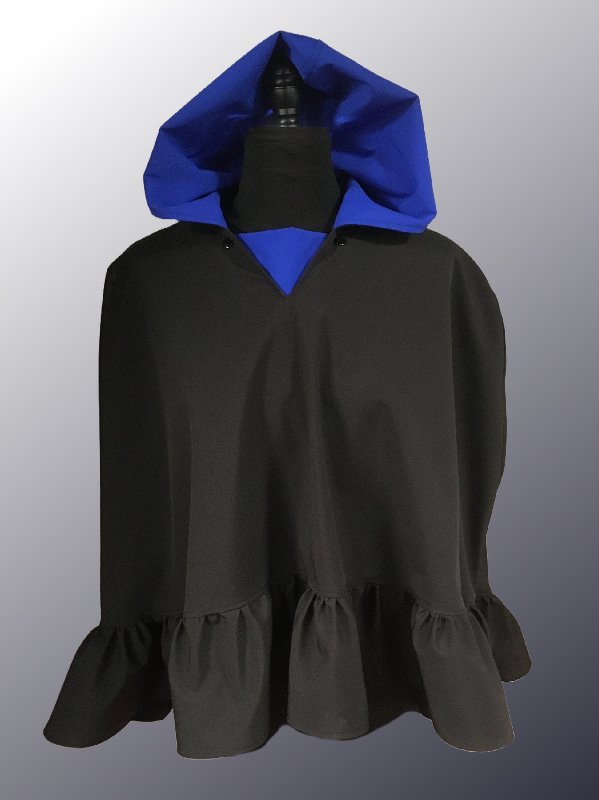 These women’s ponchos have been designed in hi-performance, mesh backed, lightweight and waterproof, all-weather fabric. The ponchos are washable in black with a pop of color at the snap in, snap off neck and inside hood. They come in two sizes—small/medium and large/extra-large, both a little bit longer in the back with a flirty ruffle that completes the look.